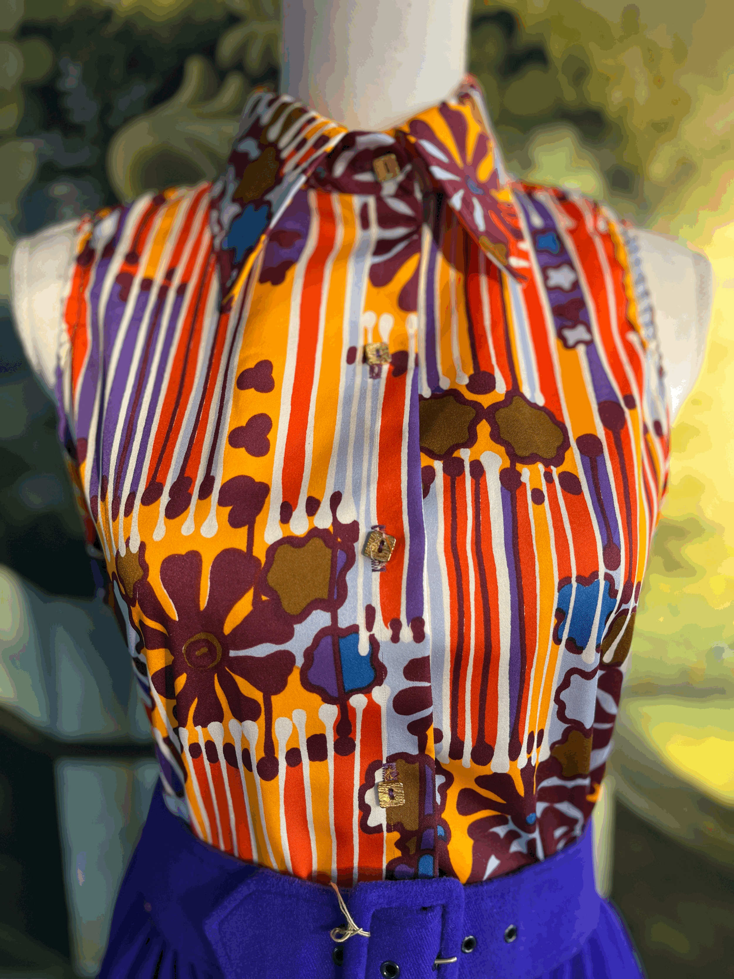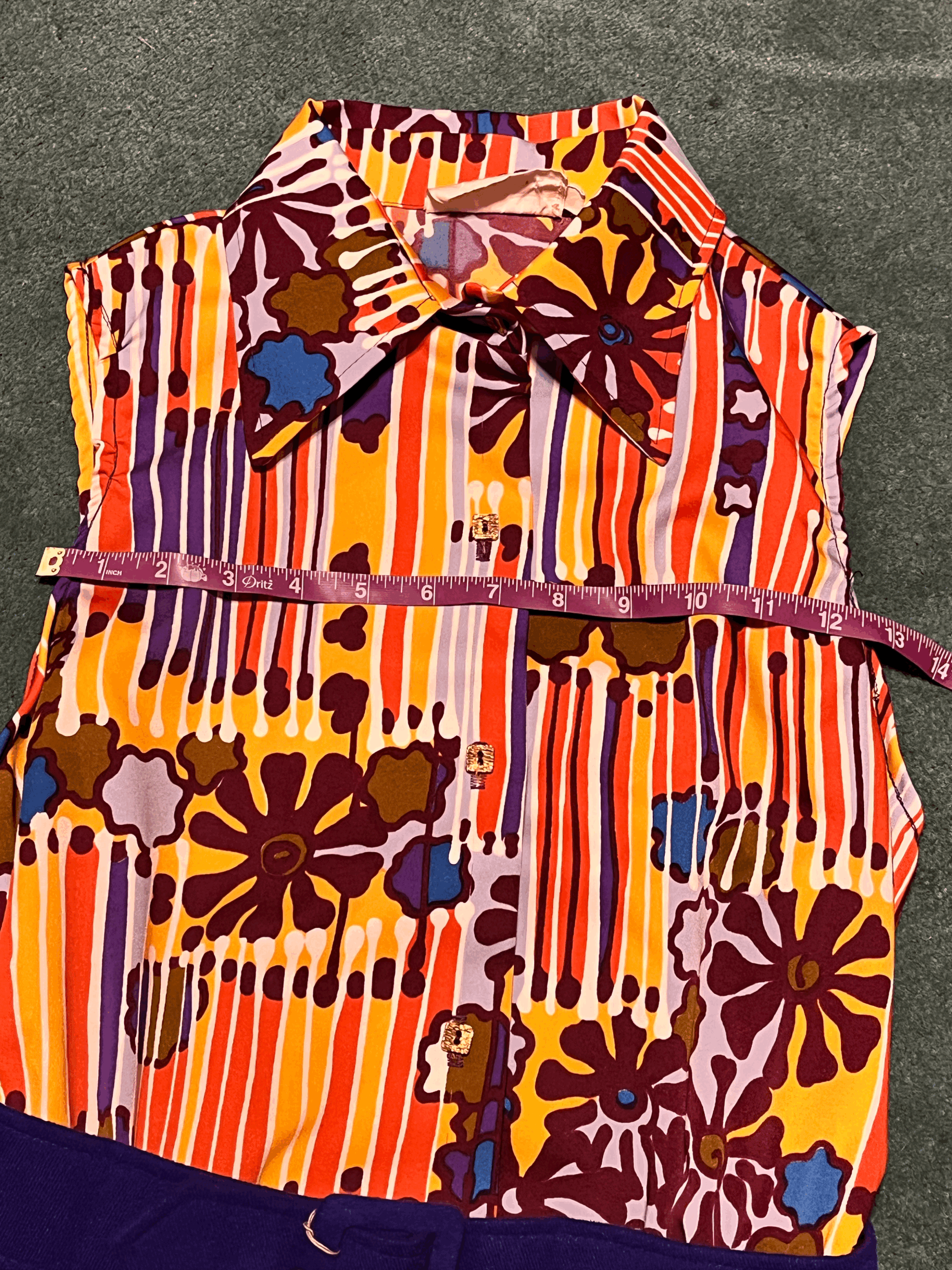 In IMMACULATE condition, this stunning 60’s vest is a humdinger! In wonderful state, the blackest of velvet is covered in little mirrors and golden embroidery. Sure to bring an “on stage” energy to every day looks!